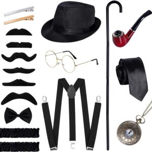 Ishua 1920s Men Costume Accessories, 18 pcs Old Men Gangster Costume Set, Roaring Retro Mens Gatsby Accessories 1920s